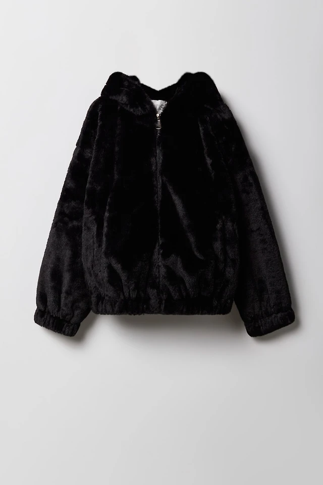 Toddler Girls Bow Heavyweight Faux Fur Lined Bubble Puffer Jacket