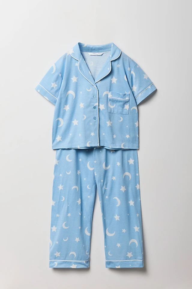Girls Printed Button-Up Top & Pant 2 Piece Pajama Set