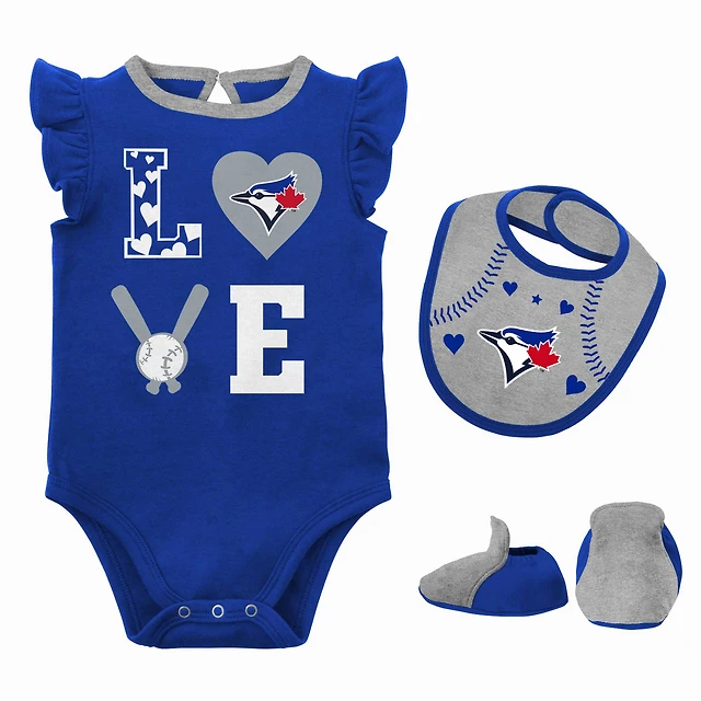 Newborn & Infant Royal/Heather Gray Toronto Blue Jays Three-Piece Love of Baseball Bib Bodysuit Booties Set