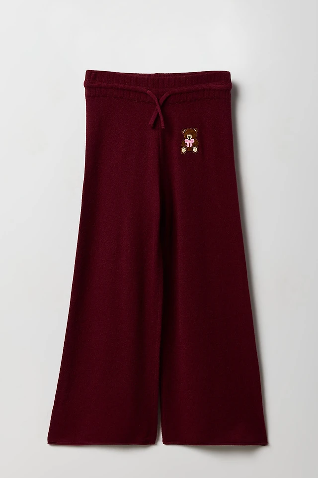 Girls Embroidered Knit Wide Leg Pant