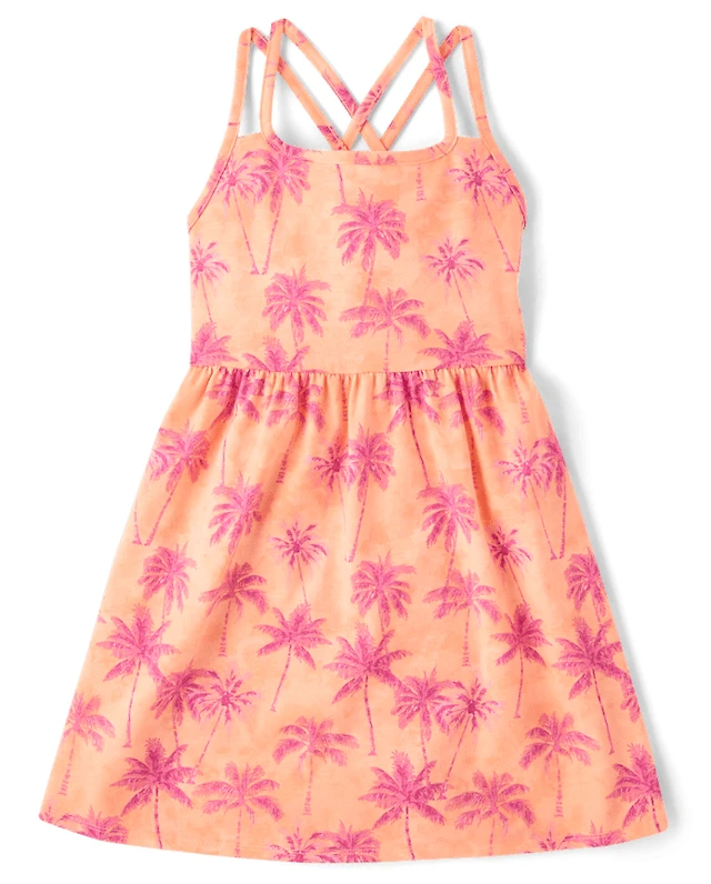 Baby And Toddler Girls Palm Tree Tie Shoulder Dress