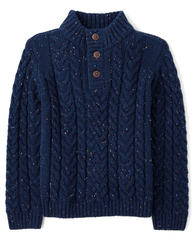 Boys Textured Cable Knit Mock Neck Sweater - Little Essentials