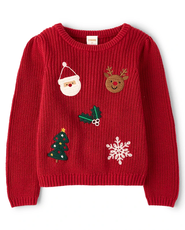 Girls Crochet Holiday Shaker Stitch Sweater - Royal Christmas