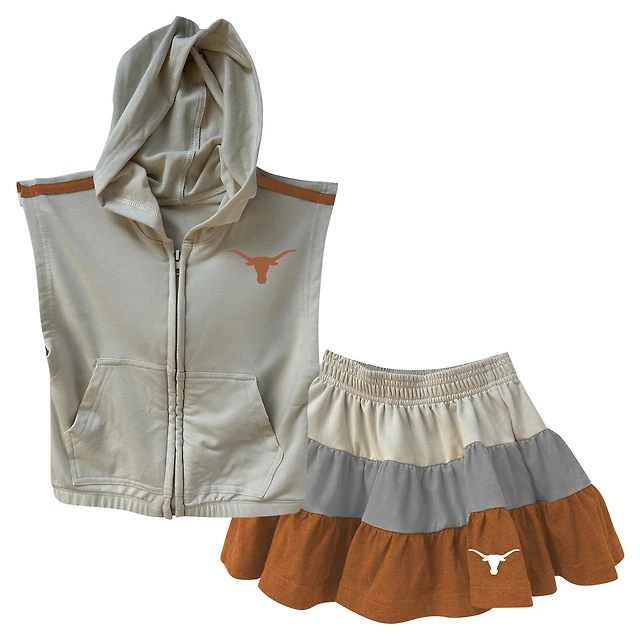Girls Toddler Wes & Willy Tan Texas Longhorns Tri-Blend Sleeveless Full-Zip Hoodie Tiered Skirt Set