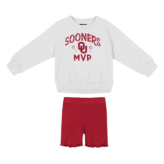 Girls Toddler Colosseum White/Crimson Oklahoma Sooners Beta Fleece Sweatshirt and Shorts Set
