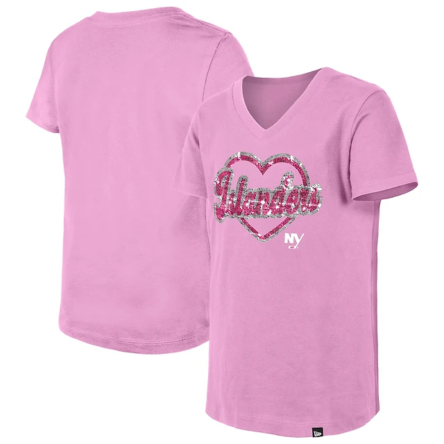 Girl's Youth New Era Pink York Islanders Flip Sequin V-Neck T-Shirt