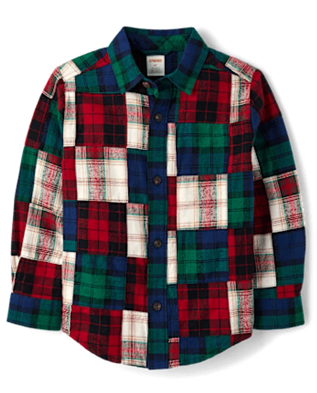 Boys Plaid Madras Flannel Button Up Shirt - Holiday Express