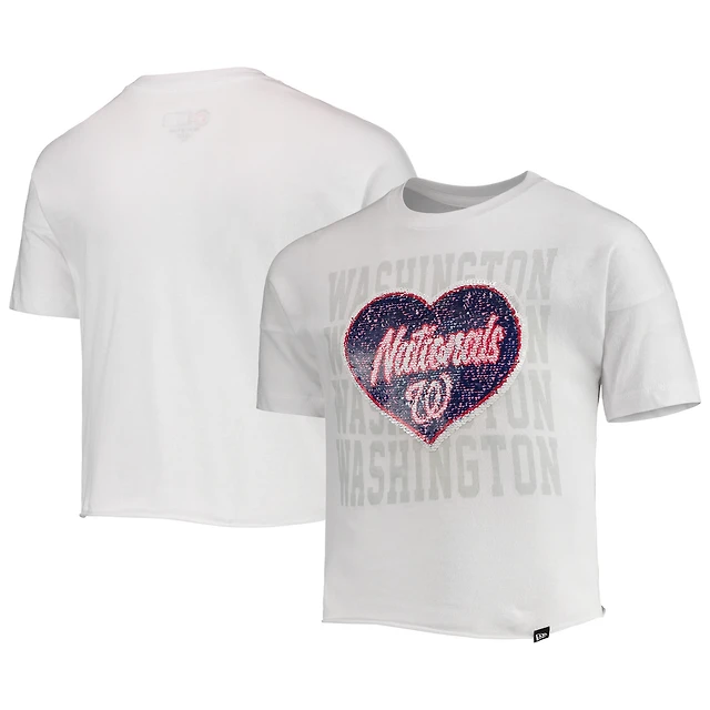 Girls Youth New Era White Washington Nationals Flip Sequin Heart Crop Top