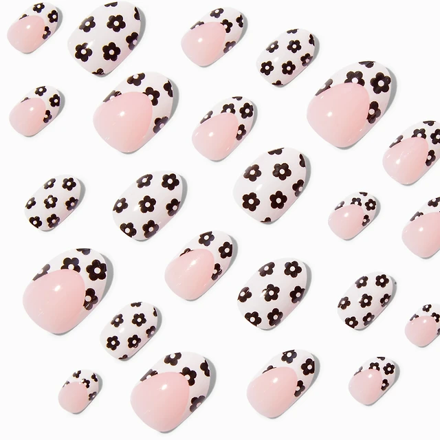 Black & White Daisy French Tip Stiletto Press On Faux Nail Set - 24 Pack