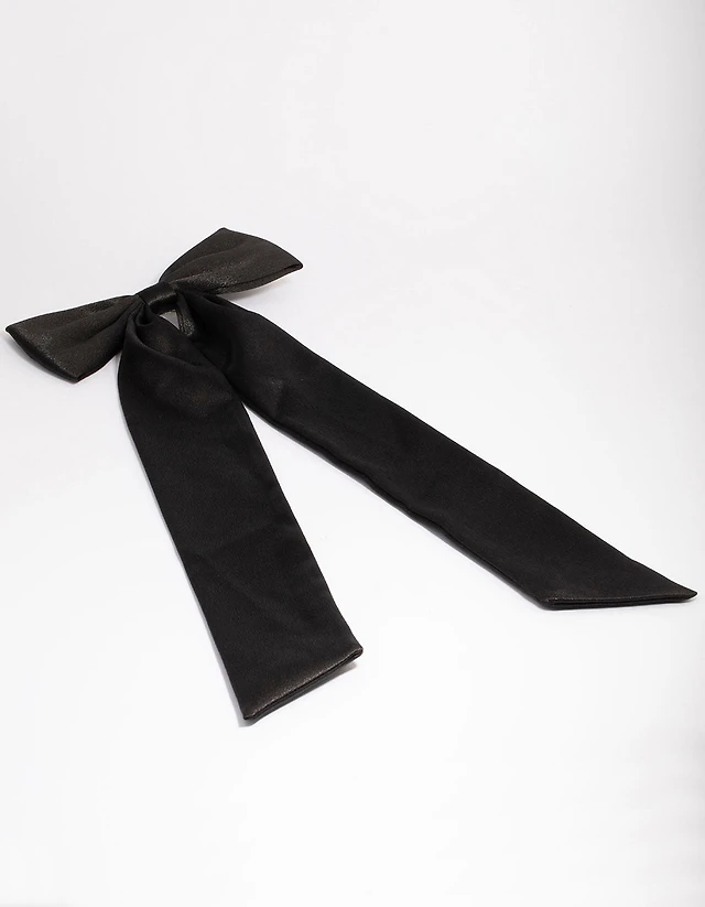 Black Fabric Organza Diamante Cup Chain Hair Bow Clip