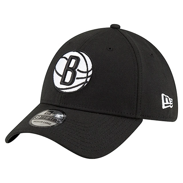 Men's New Era Black Brooklyn Nets Logo 39THIRTY Flex Hat
