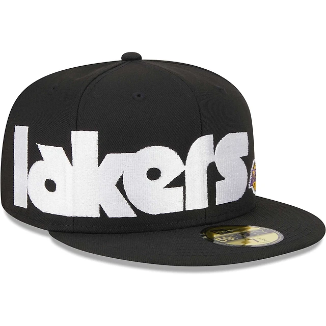 Men's New Era Black Los Angeles Lakers Checkerboard UV 59FIFTY Fitted Hat