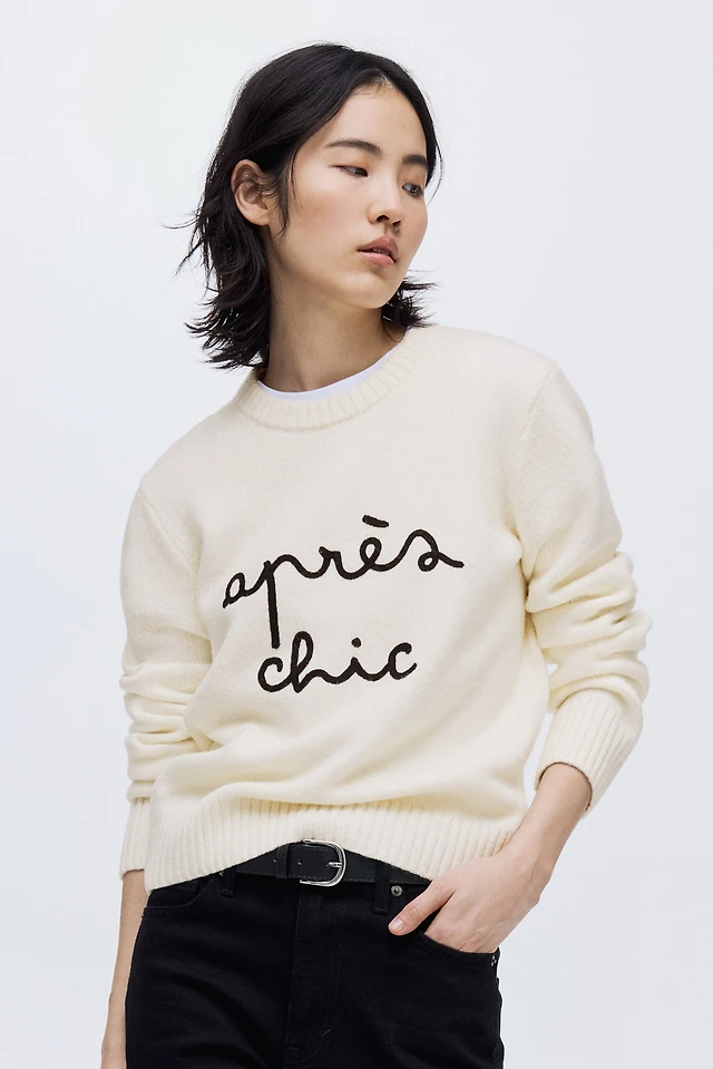 Long-Sleeve Crew-Neck Sweater with Pearls