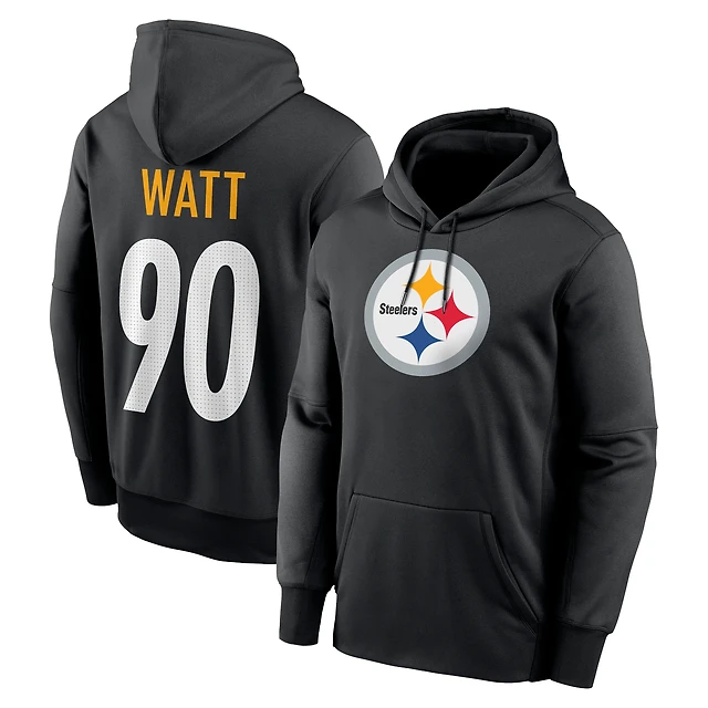 Men's Nike T.J. Watt Black Pittsburgh Steelers Player Name & Number Therma Hoodie