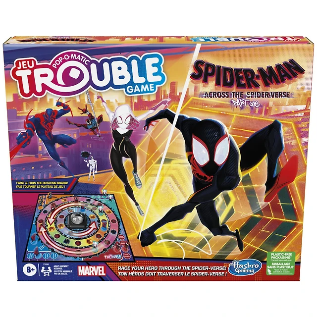 Trouble: Spider-Man Across the Spider-Verse Part One Edition Game for Marvel Fans, 2-4 Players, Rotating Gameboard
