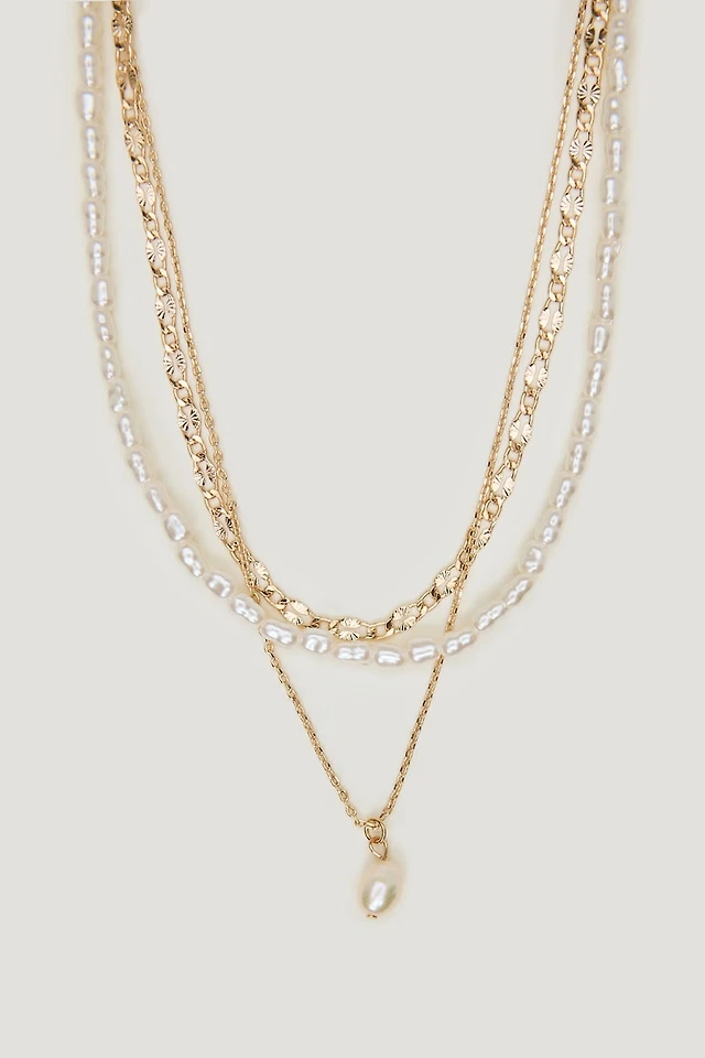 Layered Pearl and Chain Necklace
