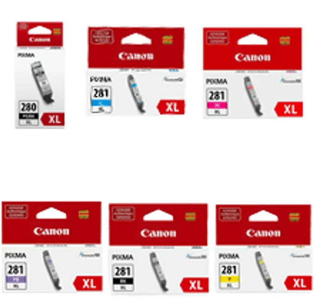 Canon PGI-280XL High Yield Ink / Inkjet Cartridge Set Black Cyan Magenta Yellow Photo Black Photo Blue (6 Carts)