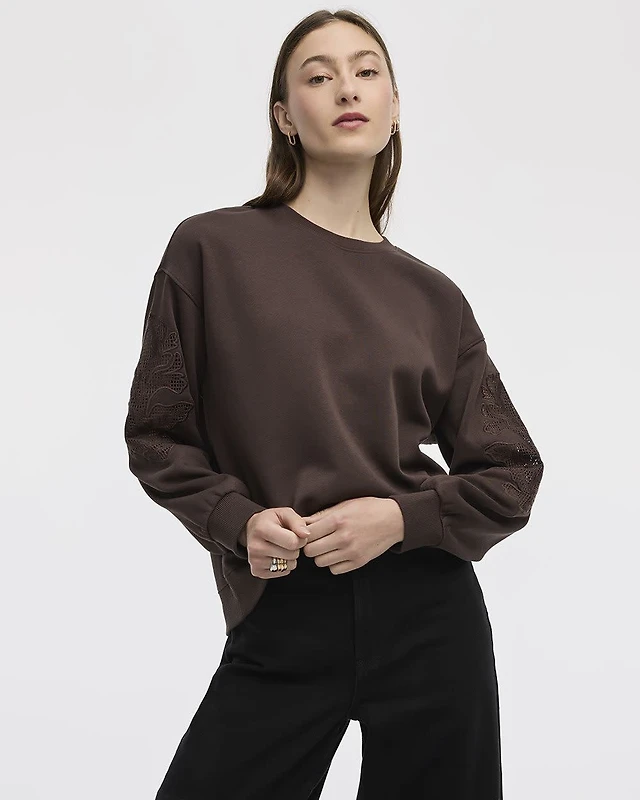Long-Balloon-Sleeve Crew-Neck Pointelle Sweater