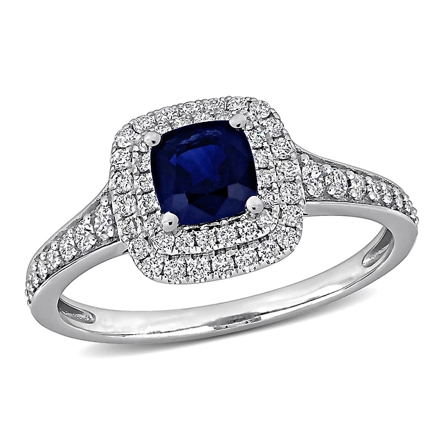 10K White Gold Sapphire & Diamond Ring