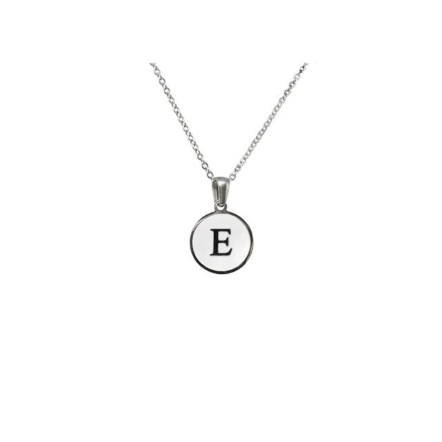 Luenzo Stainless Steel Initial Necklace "W" with Mother of Pearl Inlay