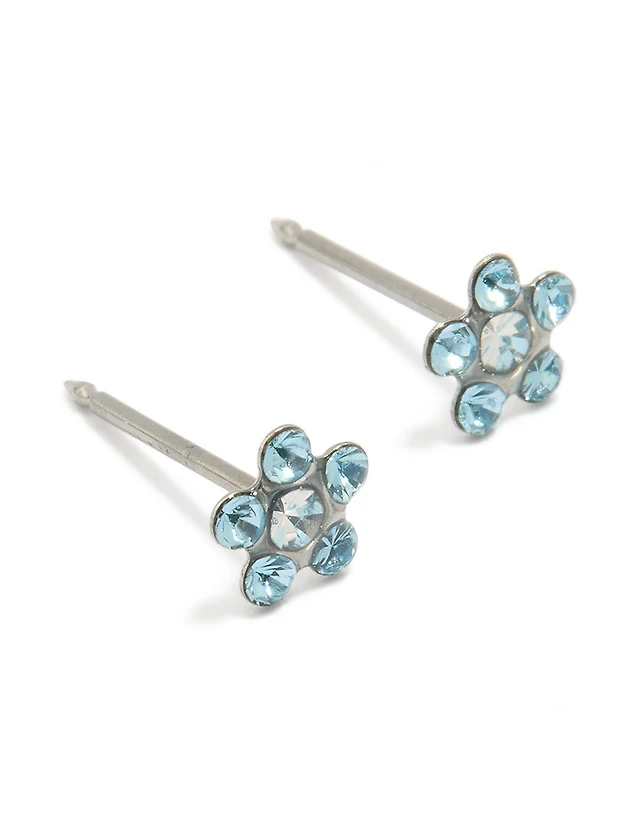 Child's Rose Crystal Ball Earrings in 14K Gold