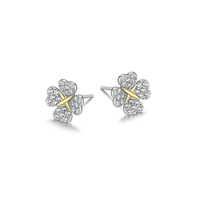 Diamond Heart & Bow Stud Earrings in Sterling Silver