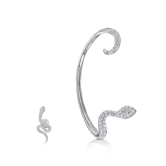 Sterling Silver Cubic Zirconia Floral Left Ear Cuff