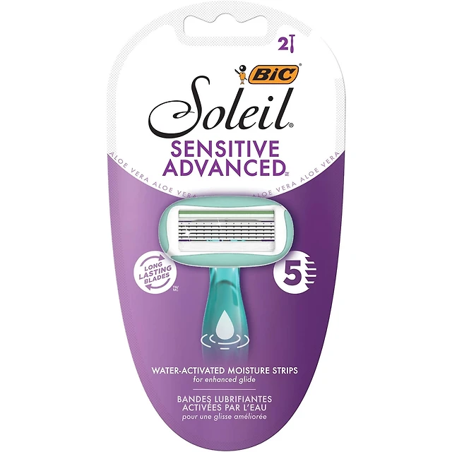 BIC Soleil Sensitive Advanced Women's Disposable Razor, Five Blade, 2 Count, For a Flawlessy Smooth Shave