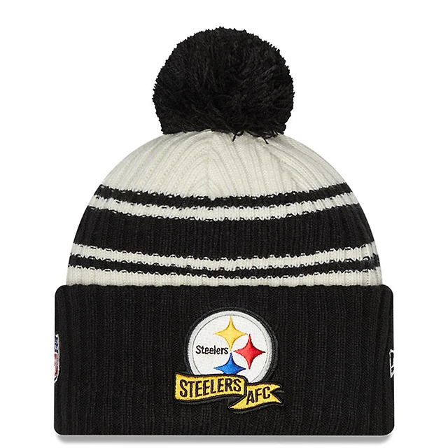 Men's New Era Cream/Blue Carolina Panthers 2022 Sideline - Sport Cuffed Pom Knit Hat