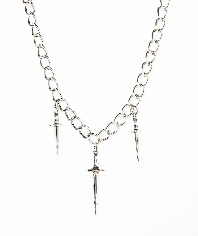 Stone + Locket Dagger Silver Choker Chain Necklace