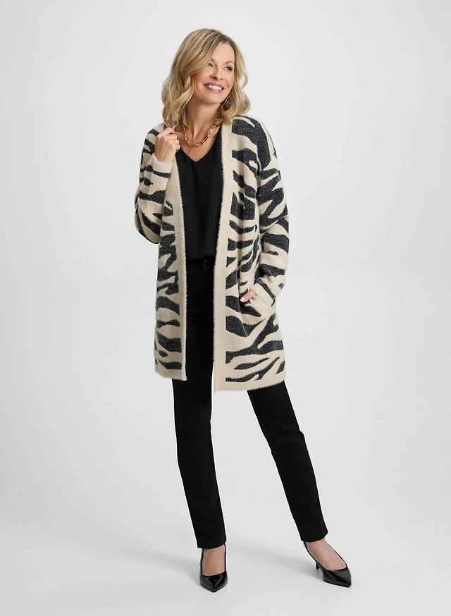 Zebra Print Cardigan, Rib Knit & Jeans