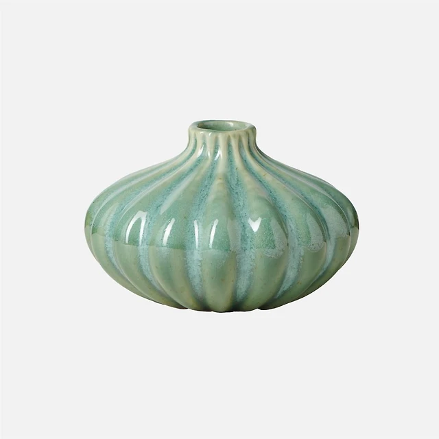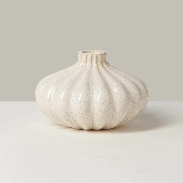 Torre & Tagus Echo Ribbed Round Ceramic Vase, 5.5" - White
