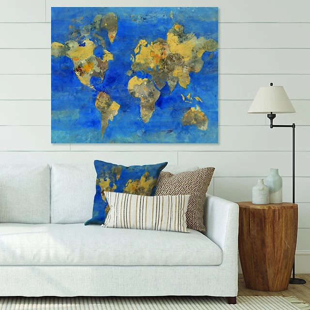 Landscape of Dark Blue Mountains & Gold Strokes II Wall Art