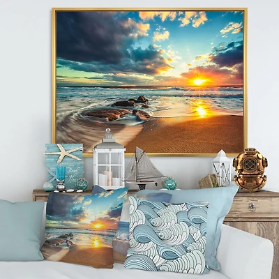 Big Wave Hit the Rock at Beach Canvas Wall Art Print