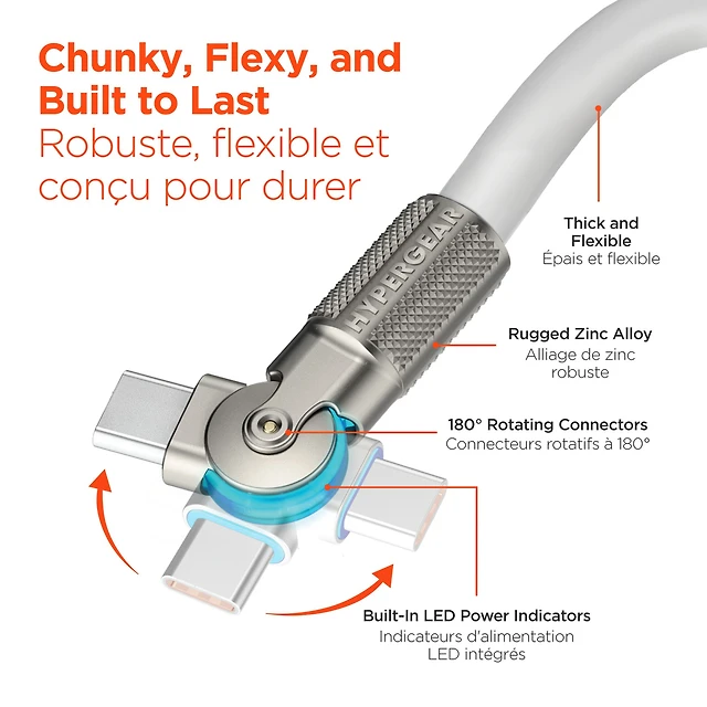 HyperGear 6 ft. 180cm USB-C to USB-C Chunky 180 Rugged Cable w/Rotating Connectors