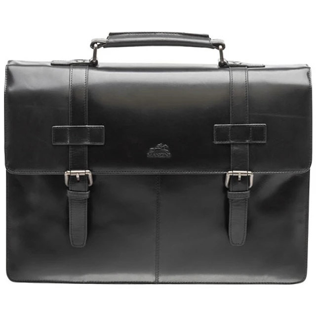 Mancini Buffalo Double Compartment Leather 15.6" Laptop Briefcase (99-5434) - Black