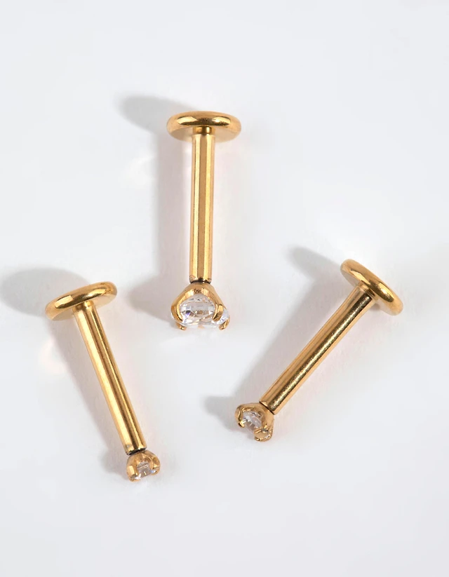 Gold Plated Surgical Steel Cubic Zirconia Classic Flat Back Pack