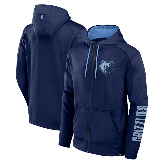 Men's Fanatics Navy Memphis Grizzlies Baller Defender Performance Full-Zip Hoodie