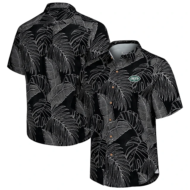Men's Tommy Bahama Black NASCAR Sport Coconut Point Palm Vista IslandZone Button-Up Camp Shirt