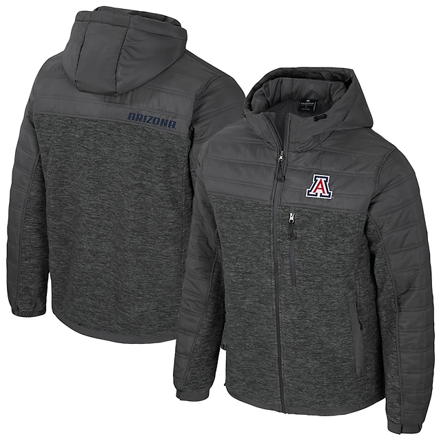Men's Colosseum Charcoal Arizona Wildcats Nightman Full-Zip Puffer Vest