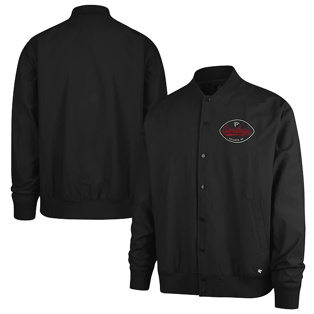 Men's '47 Black Atlanta Falcons Sundays Euro Step Twill Full-Button Bomber Jacket