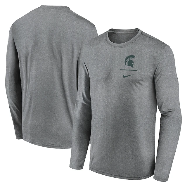 Men's Nike Heather Gray Michigan State Spartans Primary Stack Legend Performance Long Sleeve T-Shirt