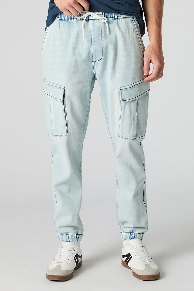 Jean mince en denim extensible d'aspect usé délavé pâle