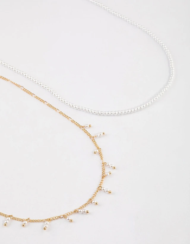 Rose Gold Pearl Diamante Heart Bracelet 2-Pack