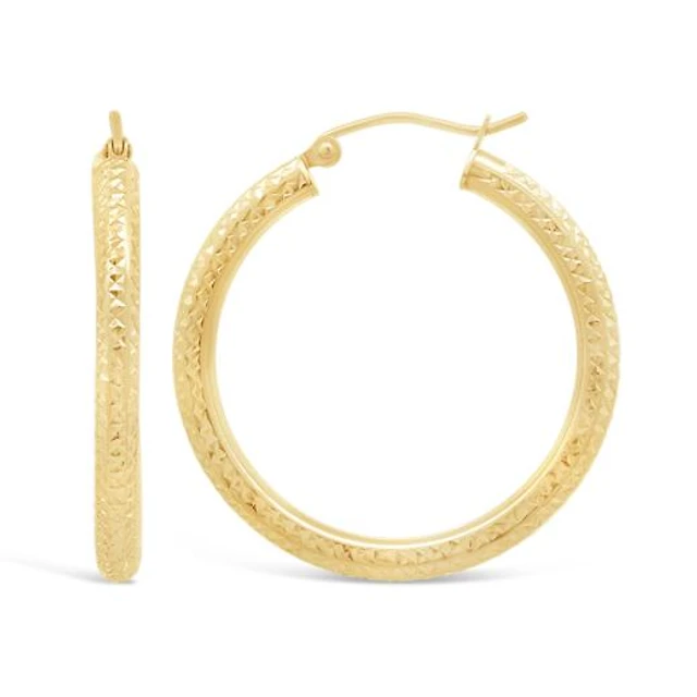 14K Yellow Gold 30mm Diamond Cut Hoop Earrings