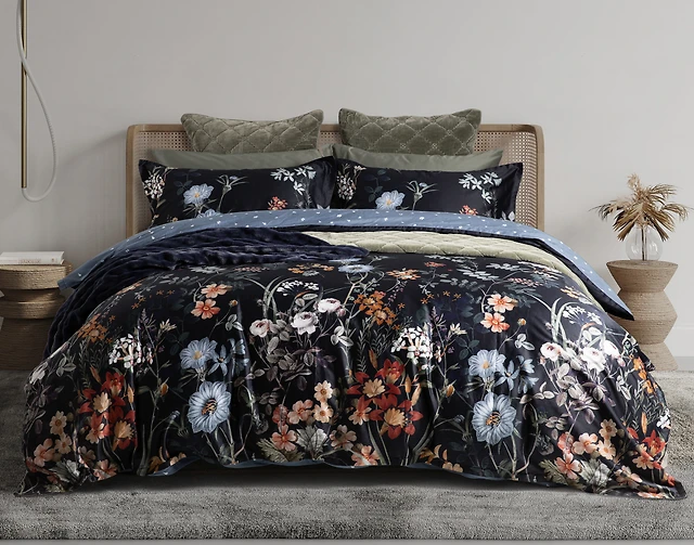 Sarita Duvet Cover, Cotton, Floral, Black,