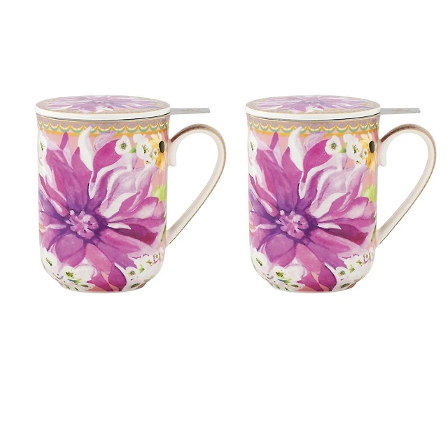Set of 2 Dahlia Pink Mugs with Lids by Maxwell & Williams (340 ml) - Pink