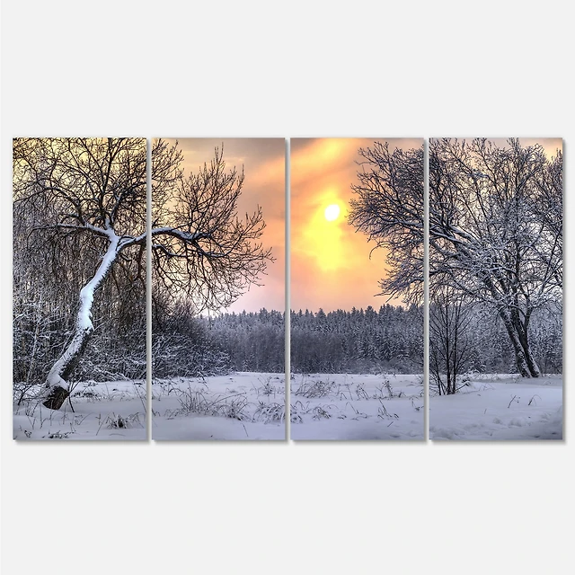 Winter Landscape with Yellow Sun Canvas Wall Art