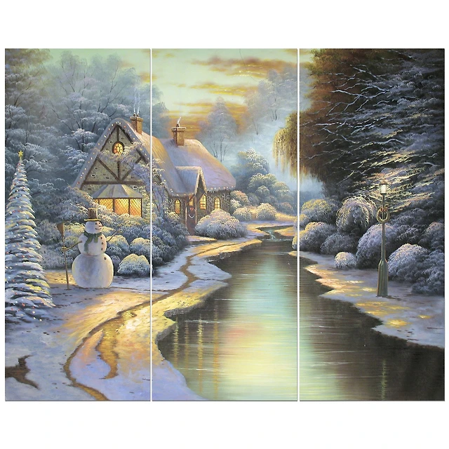 Fenced Ranch at Sunrise Canvas Wall Art - 3 Panels