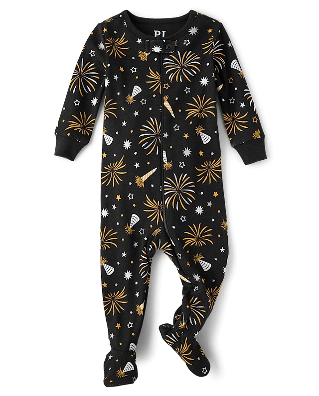 Baby And Toddler Matching Family New Year Snug Fit Cotton Footed One Piece Pajamas